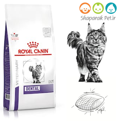 غذای دنتال گربه رویال کنین (Royal Canin Dental) اثر سایشی ملایمی بر روی دندان ها در هنگام جویدن ایجاد می کند. این عمل مکانیکی همانند مسواک زدن باعث کاهش تجمع پلاک ها و جرم ها شده و از پوسیدگی دندان ها جلوگیری می کند. برخی گربه ها میانسال با افزایش سن نیاز بیشتری به مراقبت از دندانها پیدا می کنند. این محصول تولید کشور فرانسه است.