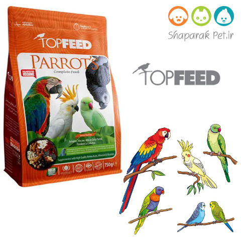 با توجه به احتیاجات غذایی طوطی سانان (طوطی ، آمازون ، کاسکو ، ماکائو ، طوطی کاکادو و پاراکیت) از مواد اولیه ارگانیک و طبیعی تولید شده و موجب سلامتی و شادابی آن ها می گردد و از افسردگی آنها جلوگیری میکند . مواد غنی موجود در غذای طوطی تاپ فید باعث رشد و براقی پرها می گردد. طوطی سانان در صورت تغذیه مناسب عمر طولانی خواهند داشت که با استفاده از غذای طوطی تاپ فید می توانید از تغذیه ی مطلوب حیوان خانگی خود اطمینان حاصل کنید و زندگی بهتری را به او هدیه دهید. وزن بسته 750 گرم است.