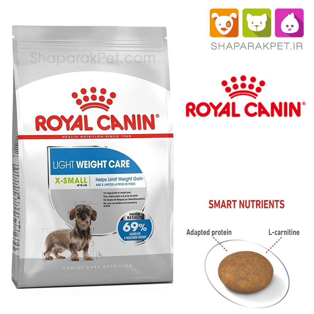 غذای سگ کنترل وزن رویال کنین برای سگ های بالغ نژادهاب کوچک مستعد افزایش وزن طراحی شده است. 30٪ تا 40٪ تمام سگ ها اضافه وزن دارند. اضافه وزن می تواند سلامت سگ را تحت تاثیر قرار دهد و منجر به دیابت یا مشکلات مفصلی شده و حتی امید به زندگی سگ را بالقوه کاهش دهد. برای جلوگیری از مشکلات سلامتی قابل توجه حاصل از اضافه وزن بسیار مهم است که با بروز اولین نشانه های چاقی به سرعت وارد عمل شوید. در نظر داشته باشید یک رژیم غذایی مناسب, به نگه داشتن وزن سالم سگ کمک می کند. ال-کارنیتین موجود در این غذا ذخایر چربی بدن را بکار انداخته و عمل چربی سوزی را تحریک می کند. غذای خشک سگ رویال مدل کنترل وزن با ایده تامین نیازهای خاص سگ های نژاد کوچک که عمدتا اضافه وزن دارند, فراهم شده است. غذای سگ لایت ویت تولید کشور فرانسه است.